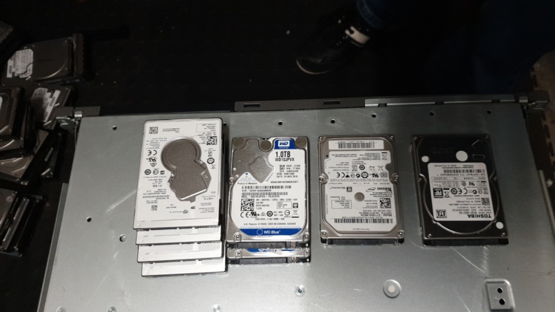 An electronic setup with a metal frame holding red and blue circuit boards connected by blue and red wires to a central unit, placed on a dark floor against a wall.